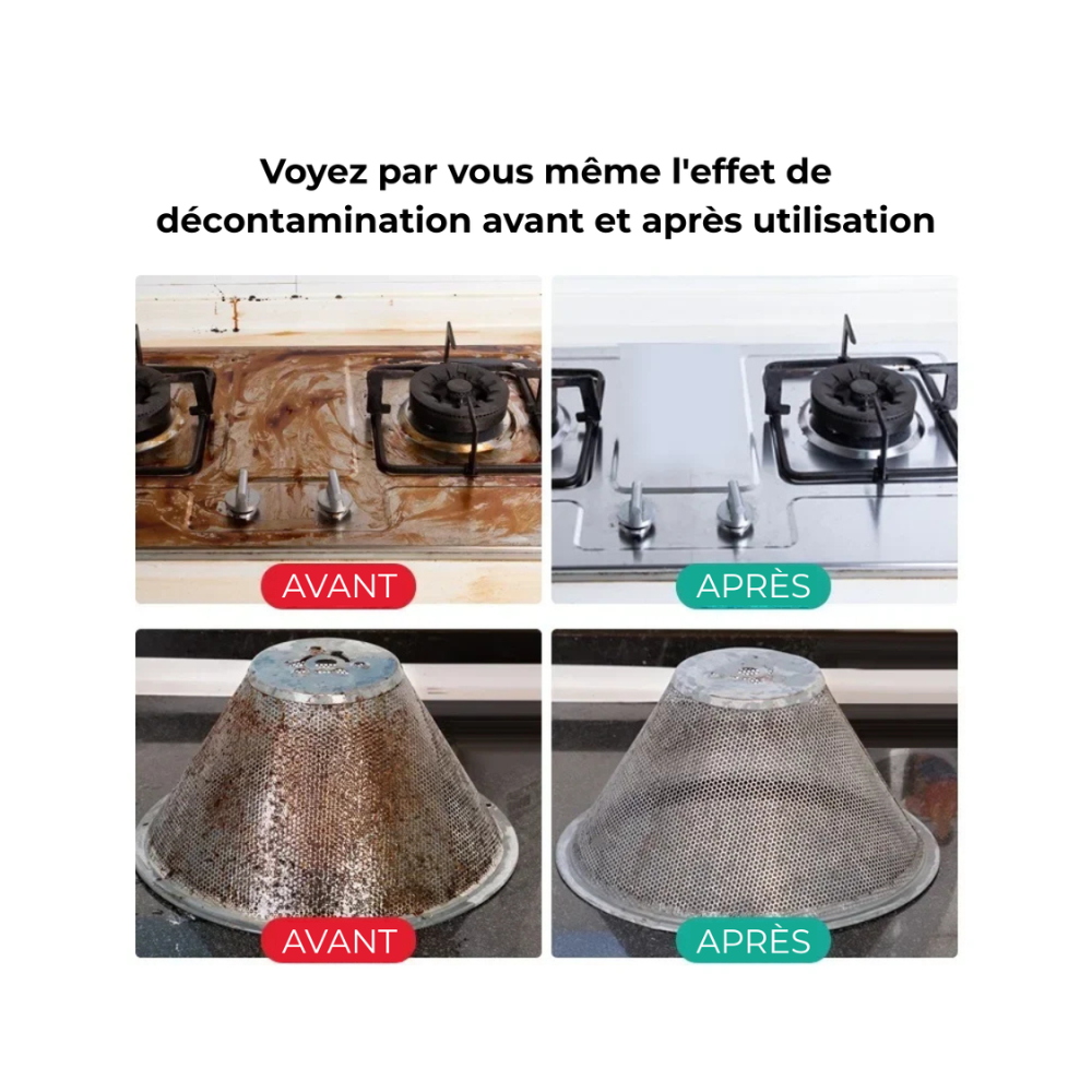 Métal, inox, carrelage, joints, vitres, plastiques, tissus auto. Toujours tester sur une zone discrète.